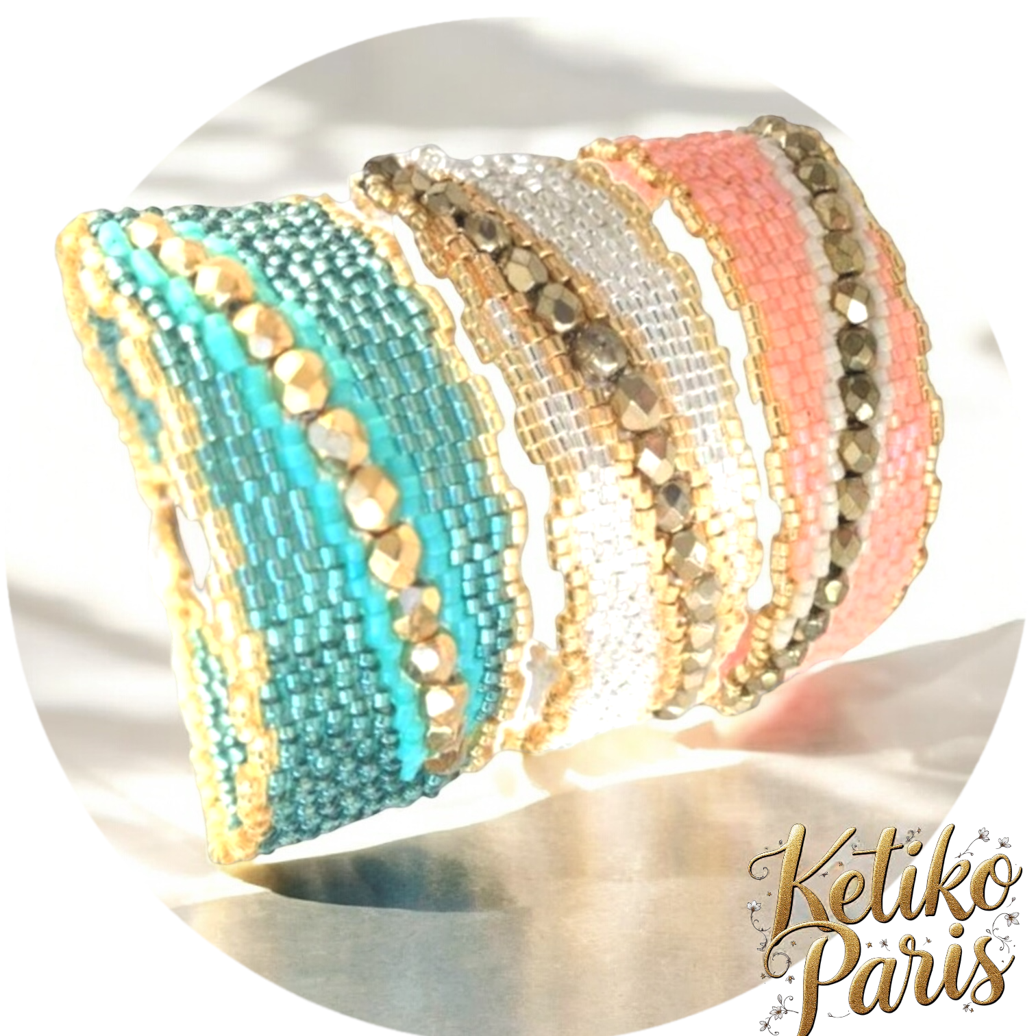 Mes basiques  : bangle et tissage horizontal comprends le modèle lineaire et un bangle taille M et parfois L. Les autres tailles sont fournies sur demandes si elles ne sont pas encore en ligne. Vous pouvez me demander plusieurs tailles.