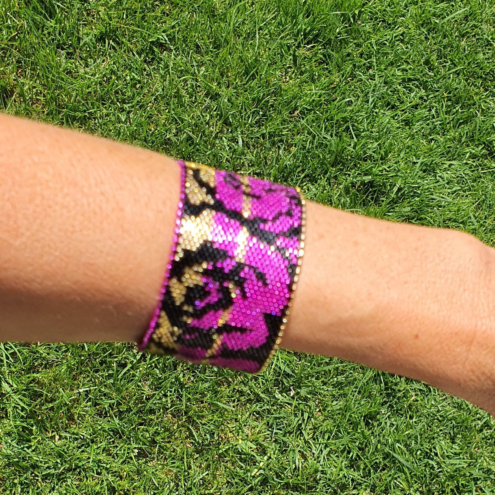 La quasi totalité de mes modèles de bracelets est tissée horizontalement.