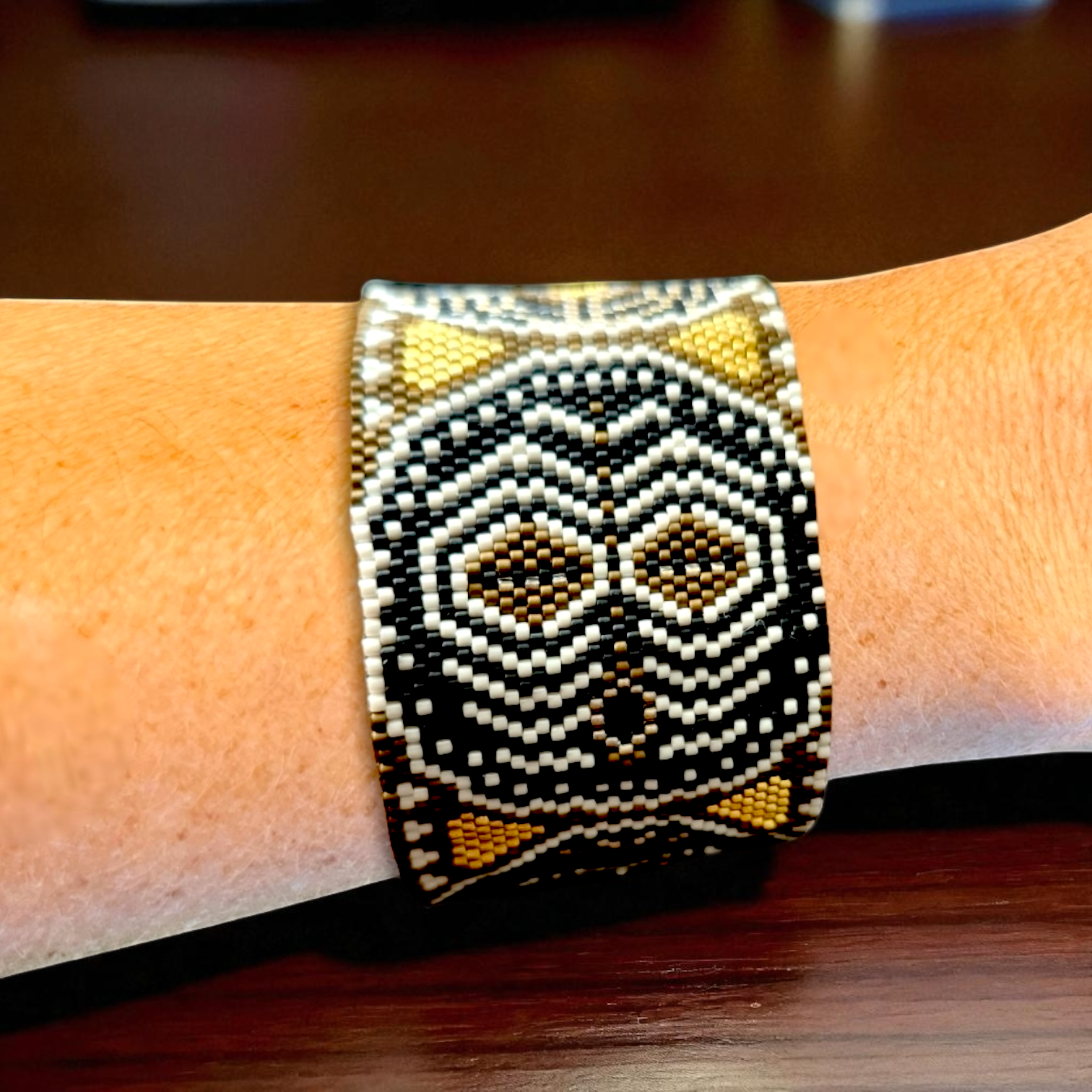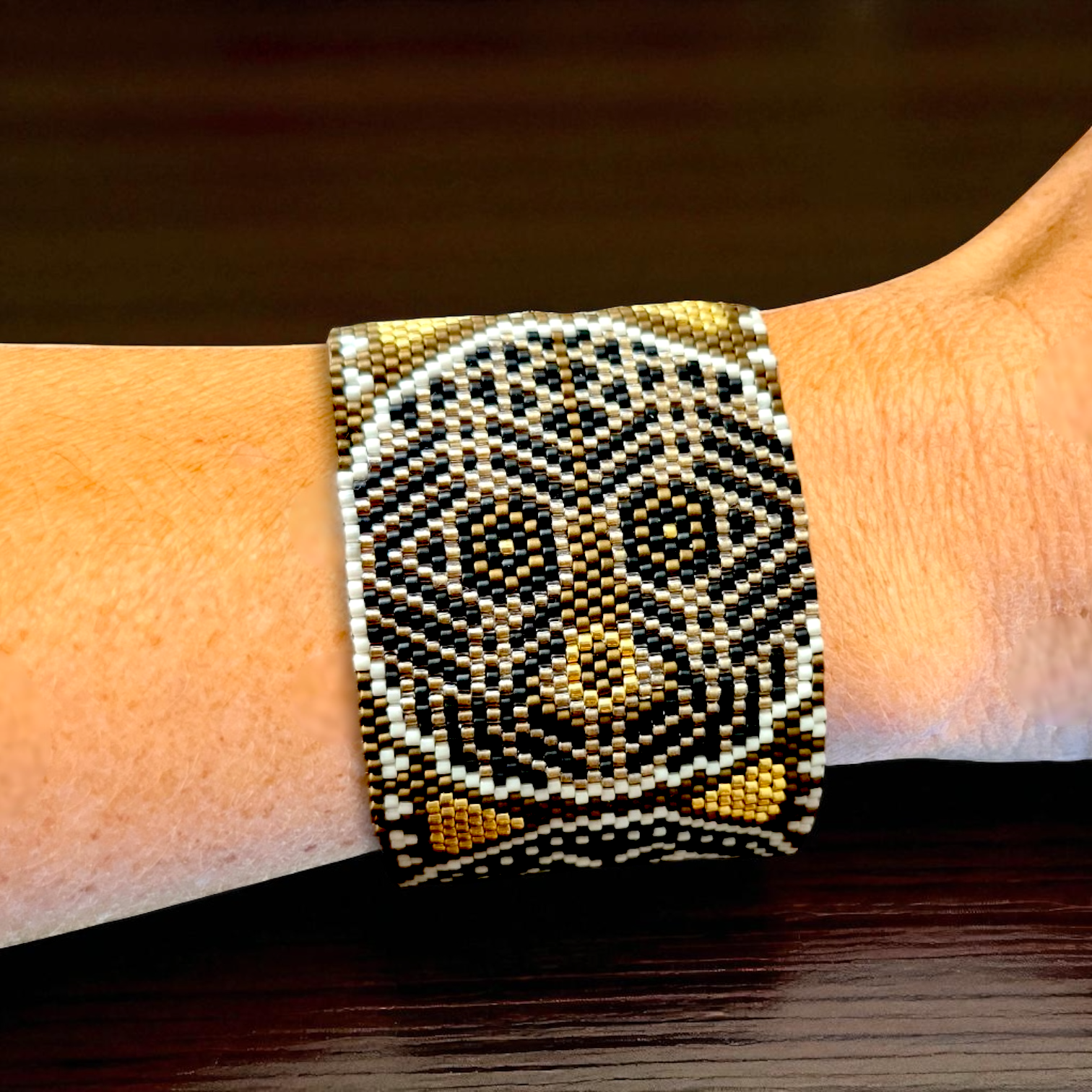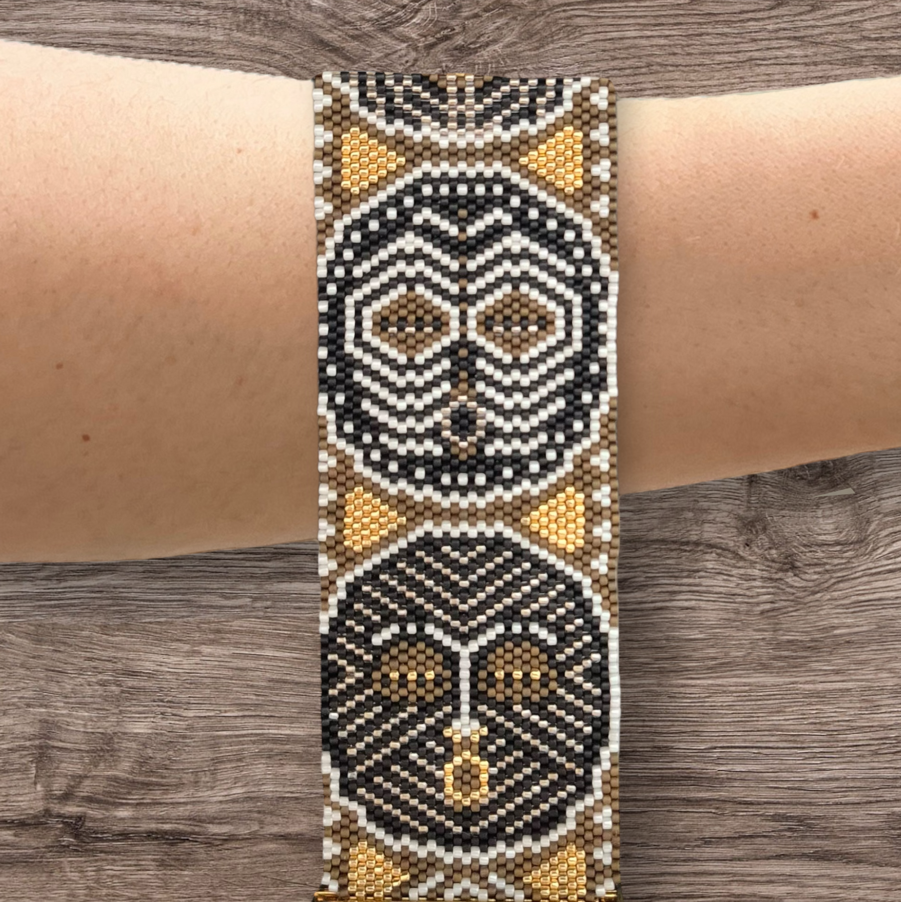 Le tissage est réalisé en point peyote, mais ils peuvent aussi être tissés en point brique (brick stitch) pour la plupart des modèles, excepté ceux tissés en peyote double ou triple ou ceux avec des inclusions de perles plus grosses.