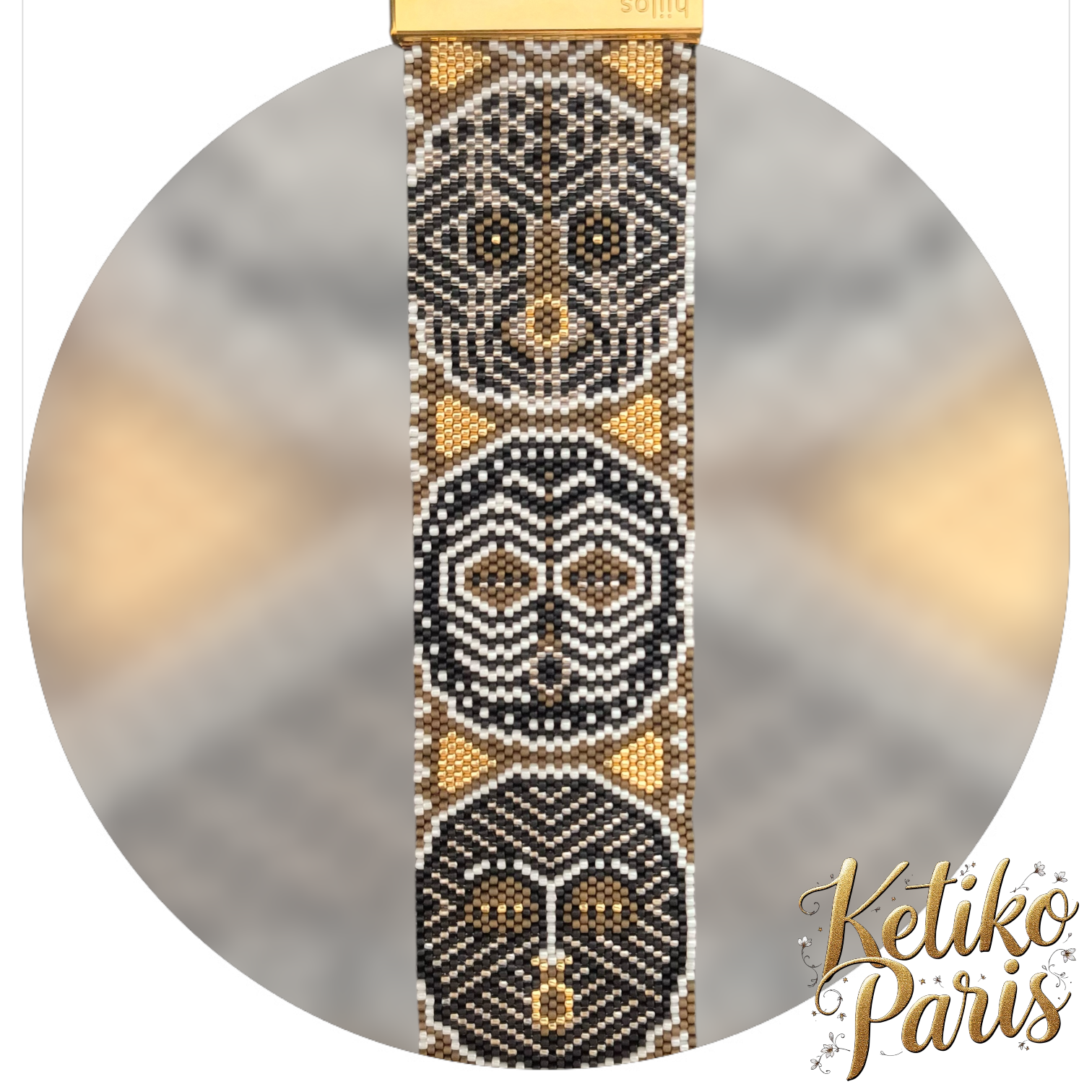 Ce superbe bracelet est une ode à l'art africain, arborant fièrement trois masques traditionnels. il est une expression culturelle, un hommage aux traditions artistiques du continent africain.
