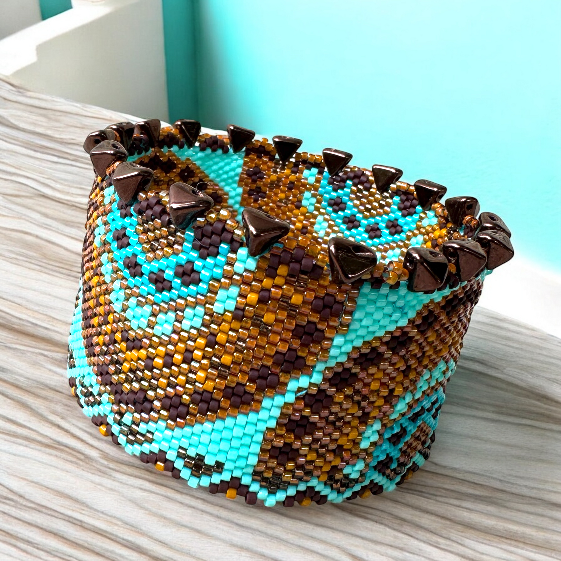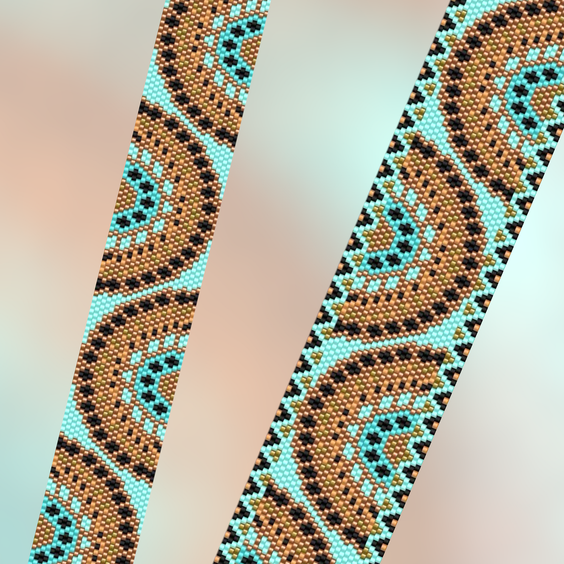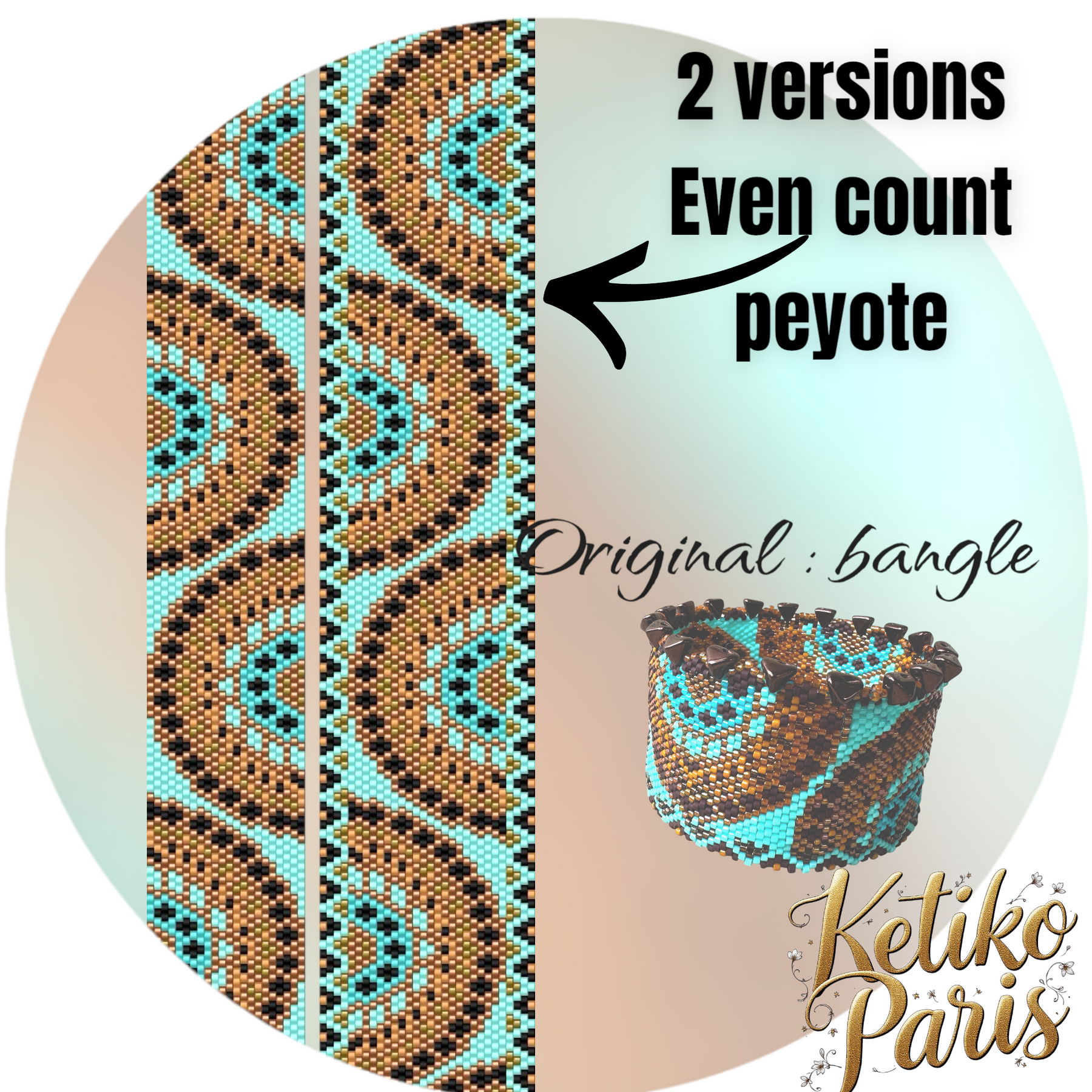 Ce modèle est réalisé dans un tissage peyote classique, pair ou impair. Je propose parfois une version paire et impaire dans le même modèle