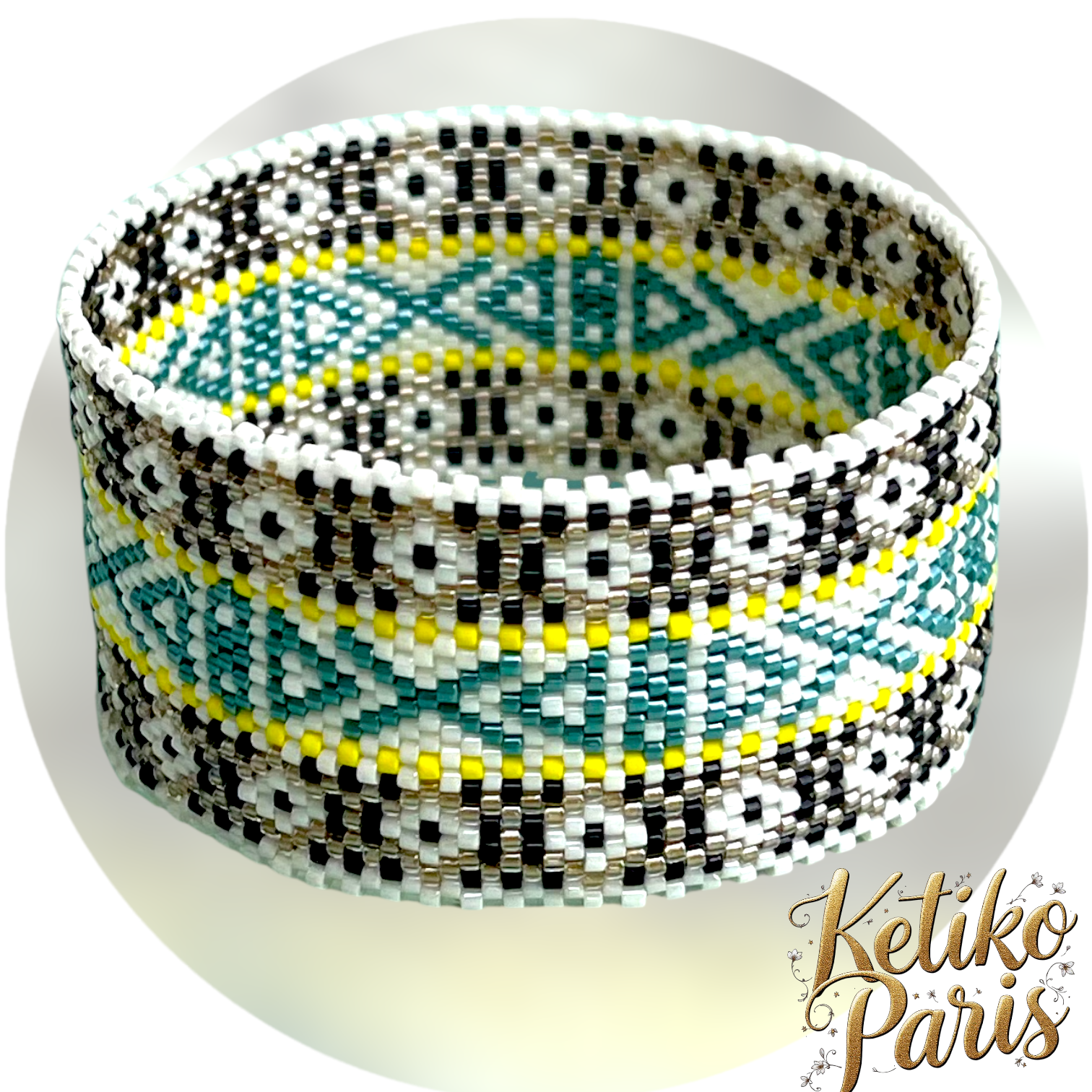 Schéma et explications pour réalisation d'un bracelet, Bangle ou avec fermoir en perles miyuki delicas 11/0. Tissage en peyote pair circulaire (bangle) ou linaire (longs rangs). Le bracelet peut aussi être tissé en brick stitch.