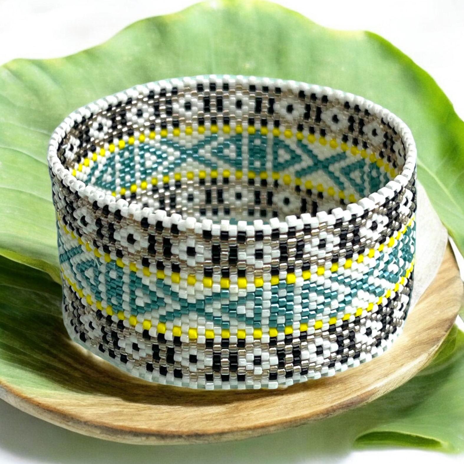 Le tissage est réalisé en point peyote, mais ils peuvent aussi être tissés en point brique (brick stitch) pour la plupart des modèles, excepté ceux tissés en peyote double ou triple ou ceux avec des inclusions de perles plus grosses.