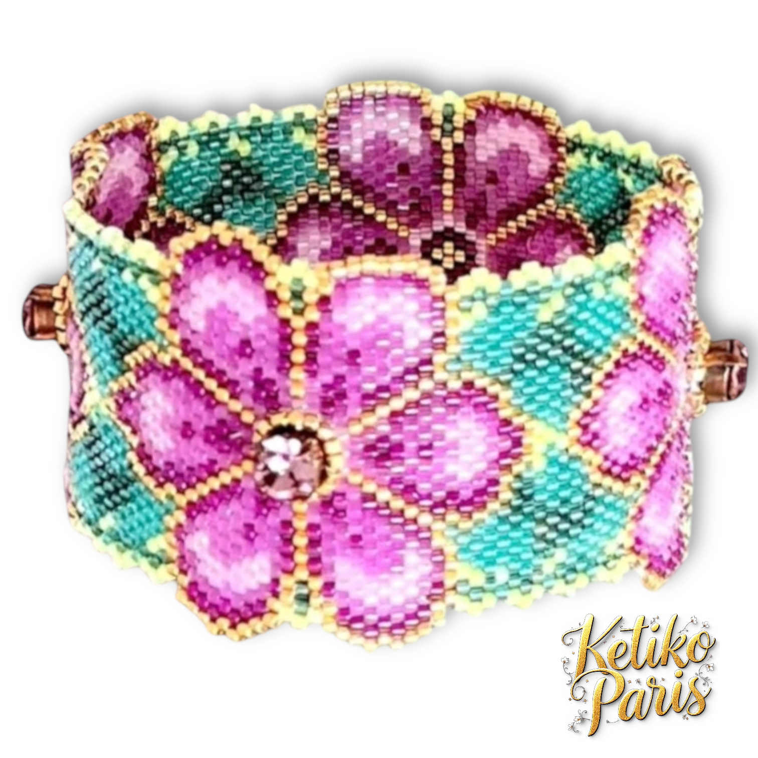 La quasi totalité de mes modèles de bracelets est tissée horizontalement.