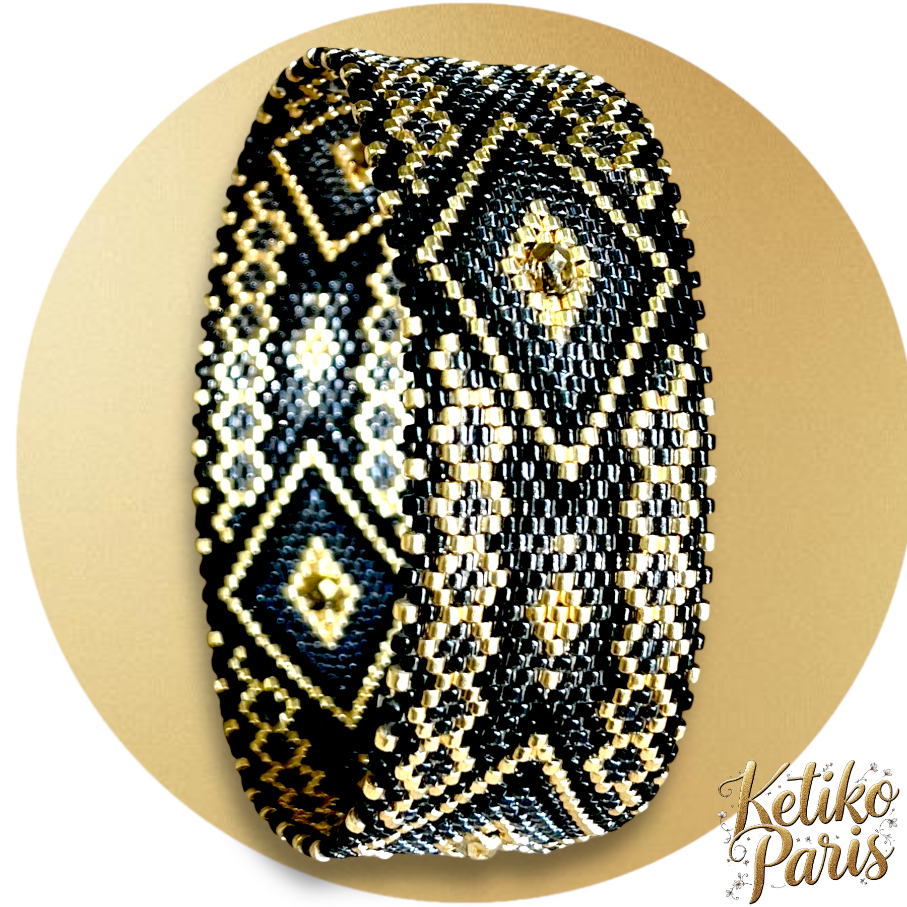 Schéma et explications pour réalisation d'un bracelet, Bangle ou avec fermoir en perles miyuki delicas 11/0. Tissage en peyote pair circulaire (bangle) ou linaire (longs rangs). Le bracelet peut aussi être tissé en brick stitch.