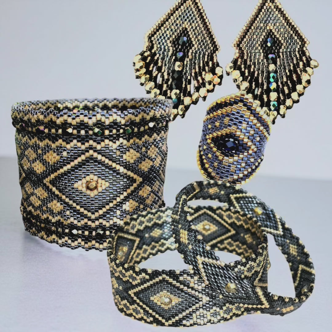 Le tissage est réalisé en point peyote, mais ils peuvent aussi être tissés en point brique (brick stitch) pour la plupart des modèles, excepté ceux tissés en peyote double ou triple ou ceux avec des inclusions de perles plus grosses.