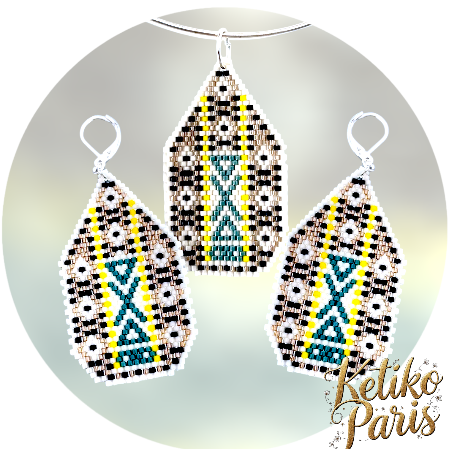 Ils sont tissés en point peyote mais pour la plupart peuvent aussi être tissés en point brique (brick stitch)