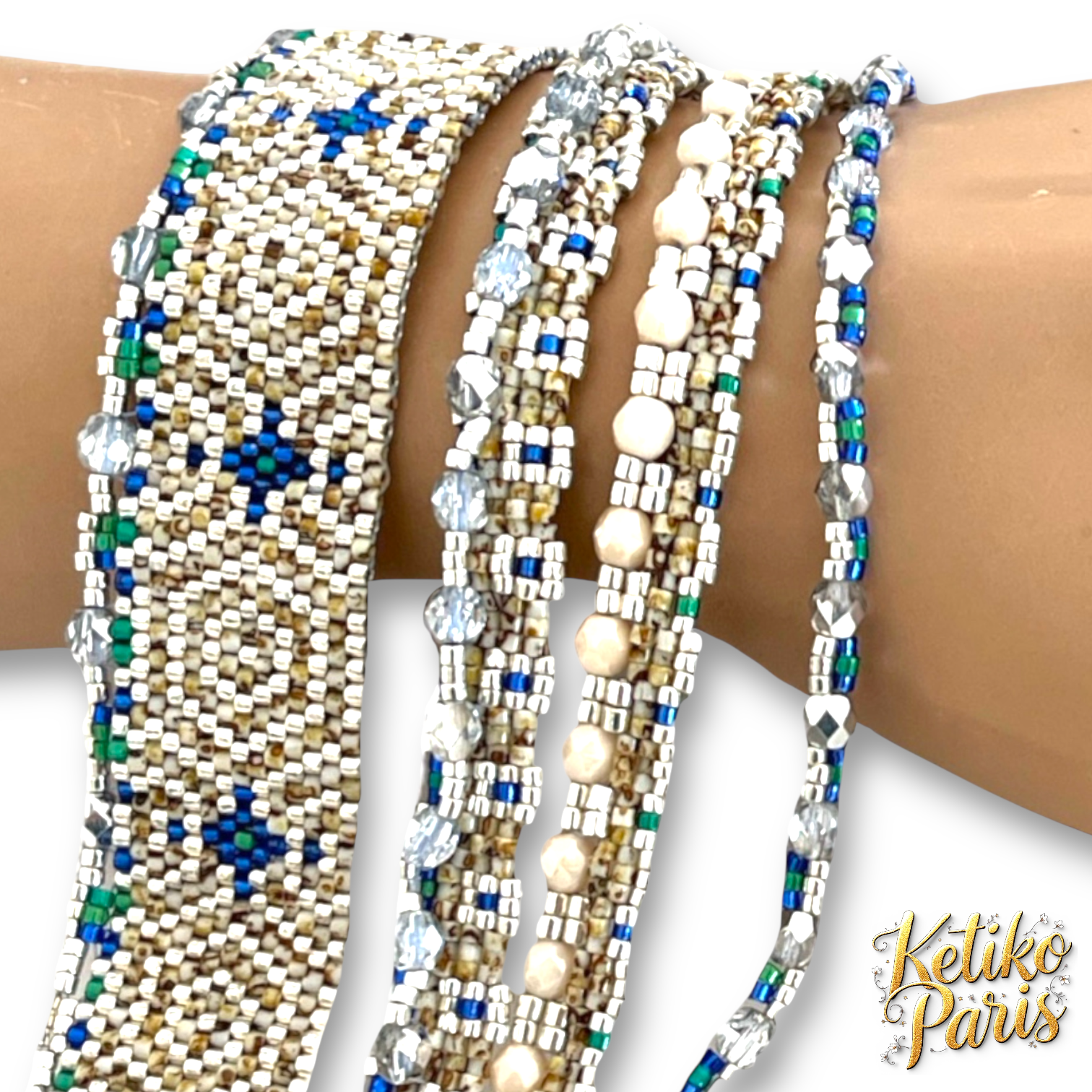 • Bracelet 2 et 3 :  peyote 3 perles dans le sens de la longueur ; Les bracelets 2 et 3 sont aussi proposés en bangle