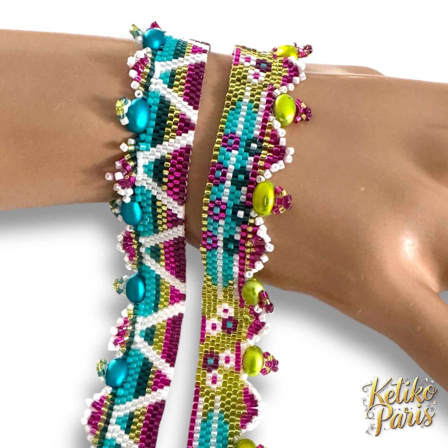 Schéma et explications pour réalisation de 2 bracelets traditionnels tissé en peyote pair avec des perles miyuki delicas 11/0 et des perles SAMOS par PUCA