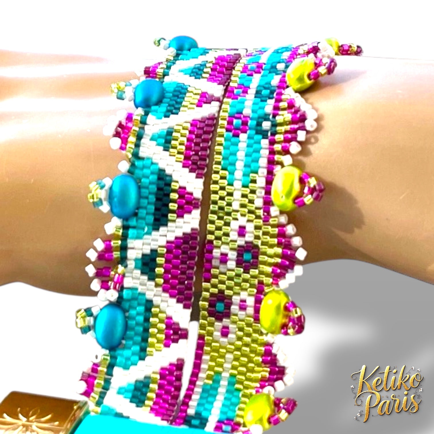 Ce modèle est réalisé dans un tissage peyote classique, pair ou impair. Je propose parfois une version paire et impaire dans le même modèle