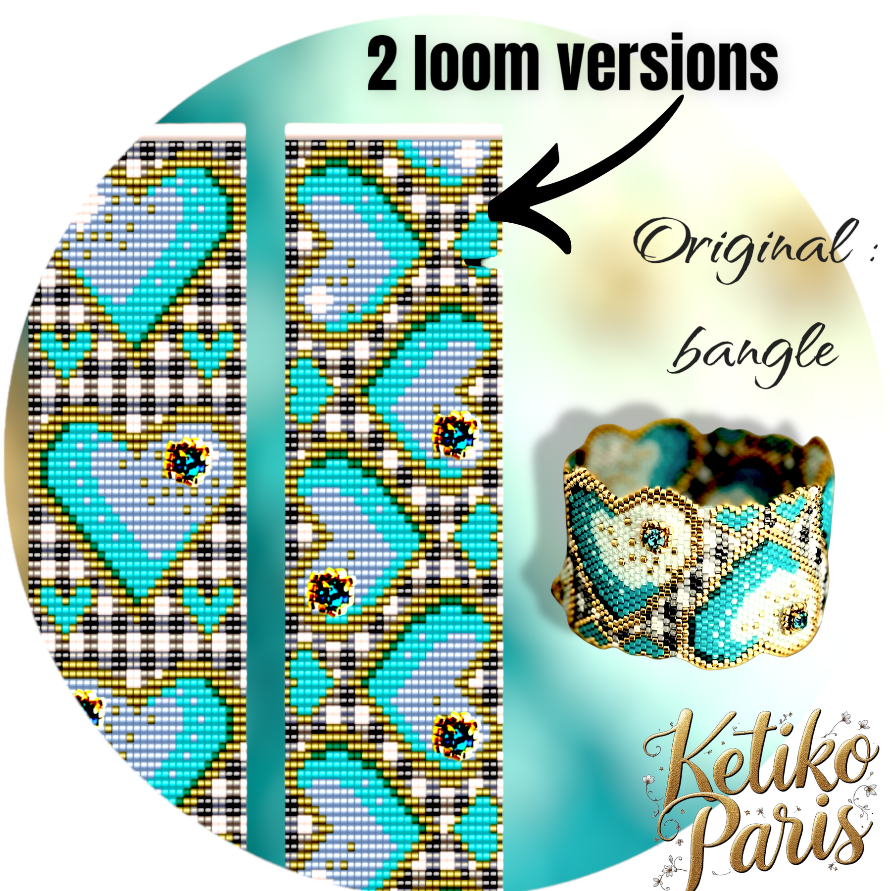 Pour les versions crées à partir du bangle, j'essaye de rester aussi proche que possible de l'original, mais il y a forcément des différences étant donné que les perles ne sont pas symétriques. Les couleurs utilisées sont les mêmes.